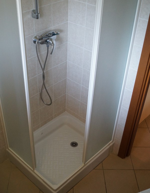 La casetta è dotata di cucina, camera da letto con separé, bagno privato con doccia e tavolo con sedie per esterno.